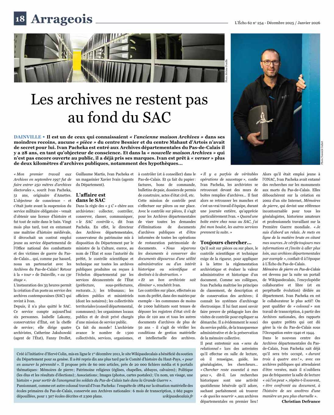 Nous tenons à souligner qu’il était le Président de la Société Archéologique et Historique de Bapaume. Son engagement et sa passion pour l’histoire et le patrimoine local étaient reconnus de tous. Avec sa disparition, c’est une figure marquante de la connaissance de l’histoire du Bapalmois qui s’en va.