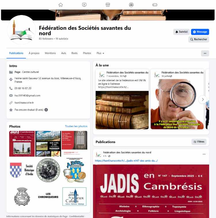 La Fédération des Sociétés Savantes a lancé officiellement sa page Facebook et son site internet, deux plateformes qui centralisent les actualités, les événements et les travaux des sociétés membres. Ces outils numériques permettent de suivre en temps réel les initiatives et les recherches menées au sein de notre réseau.
